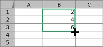 जब आप माउस पॉइंटर को सेल के निचले दाएं कोने पर पर रखते है तो माउस पॉइंटर  का आकार कुछ इस प्रकार दिखाई देता है अगर सेल मे कुछ डाटा भरा है और इस Pointer को लेफ्ट बटन दबा कर खिचते है  तो आगे का डाटा ऑटोमैटिक भर जाता है ।