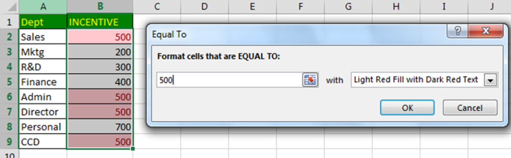अर्थात्, यदि किसी Cell का Data आपके द्वारा दी गई Value से बराबर (Equal) है,