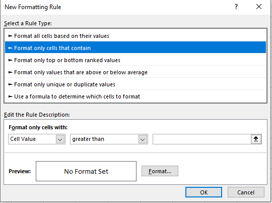 - अब एक Dialog Box खुलेगा — New Formatting Rule
