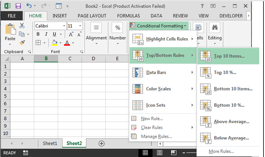 इस विकल्प का उपयोग तब किया जाता है जब आप Excel में अपने Data के सबसे ऊँचे (Top) या सबसे नीचे (Bottom) मानों को Highlight करना चाहते हैं।