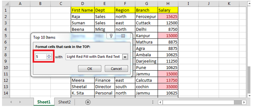 अर्थात्, Excel अपने आप आपके Data में से सबसे ऊँचे (Highest) 10 मानों को पहचान कर