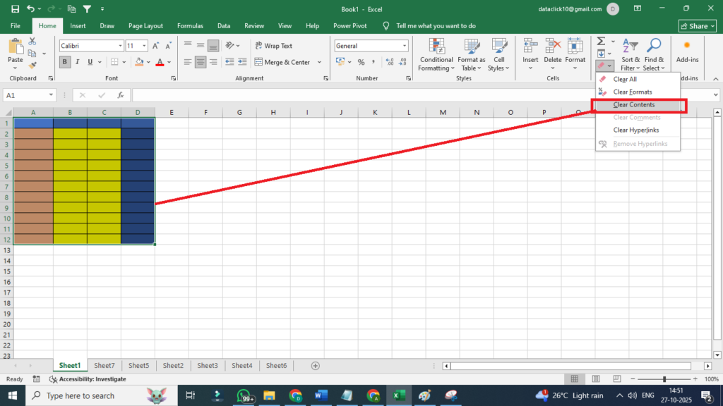ЁЯФ╣ 3. Clear Contents (рдХреНрд▓рд┐рдпрд░ рдХрдВрдЯреЗрдВрдЯреНрд╕)